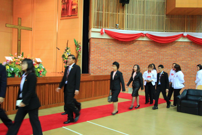 09.30 น. - ประธาน/ผู้อำนวยการ/คณะภราดา/สมาคมผู้ปกครองและครูฯ สมาคมศิษย์เก่าฯ/คณะกรรมการที่ปรึกษา เข้าสู่พิธี