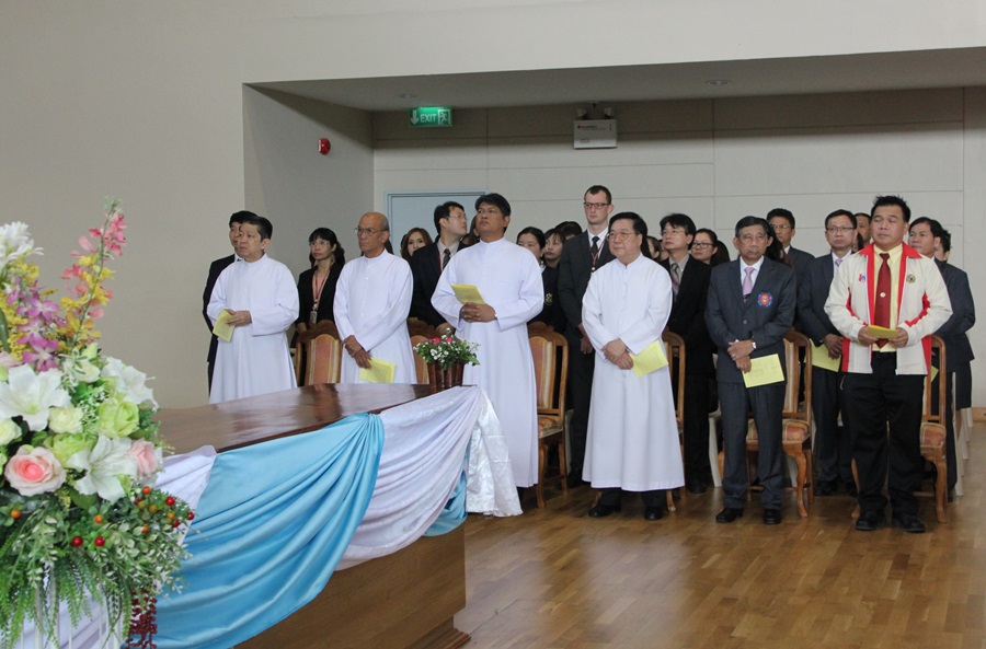 *พิธีกร เชิญประธานในพิธีวางมาลัยกรเชิญ คณะภราดาถวายมาลัยกร
