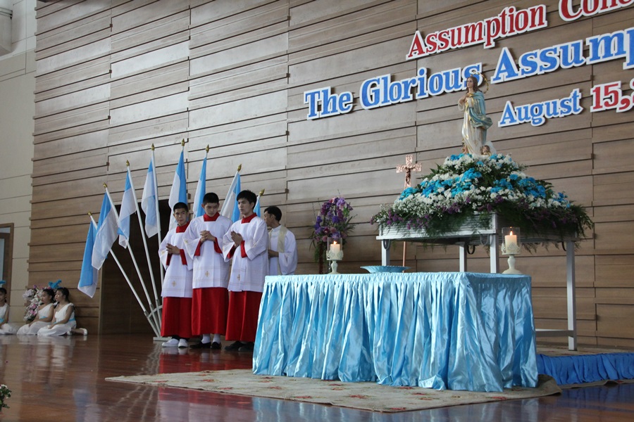 -เมื่อจบวจนพิธีกรรม /พิธีวางดอกไม้และมาลัยกรแด่แม่พระ /เพลง"ราชินีแห่งสวรรค์"
