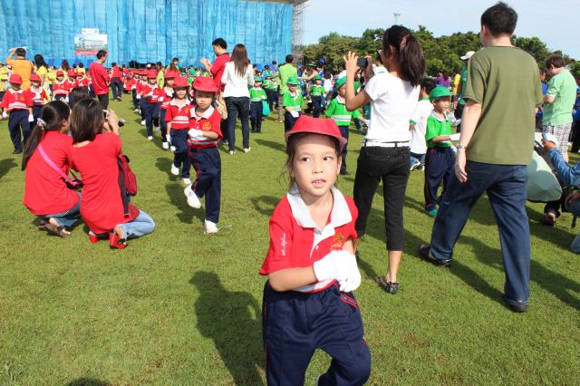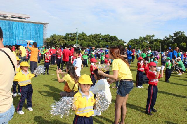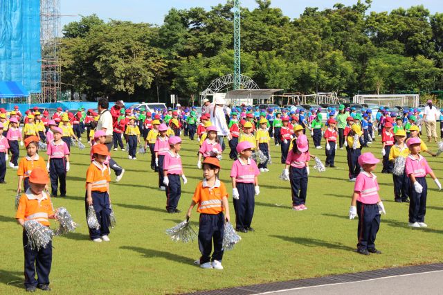- นักเรียน ป.1 ขยายแถวประจำจุดเตรียมแสดงกายบริหาร (เพลงมาร์ชกีฬาสี)