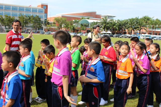 08.30 น. - การแสดงกายบริหารนักเรียนระดับชั้น ป.1 ( เพลง ACT Number one )