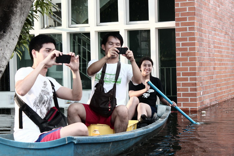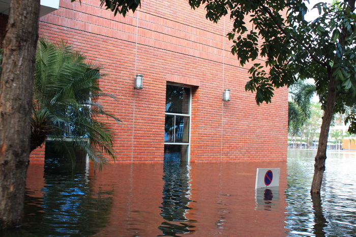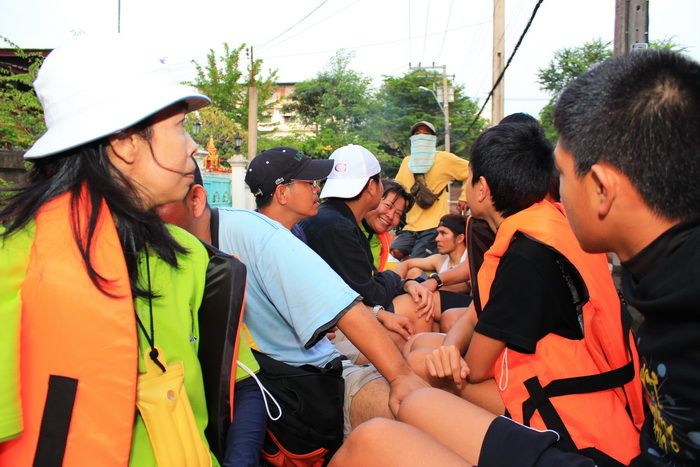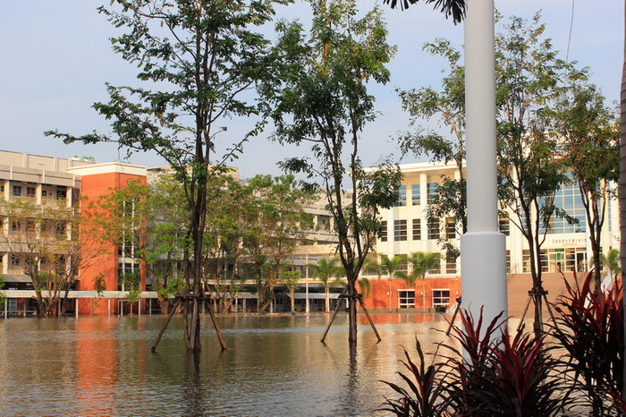 ให้กำลังใจคณะผู้บริหาร คณะครู สู้ สู้ ป้องกันน้ำเข้าโรงเรียน สู้กันเต็มที่