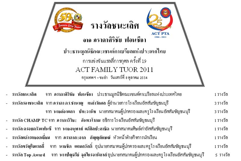 ข้อมูลการแข่งขันแรลลี่การกุศล 19 thACT FAMILY TOUR 2011 ( 8-9 ตุลาคม 2554 )