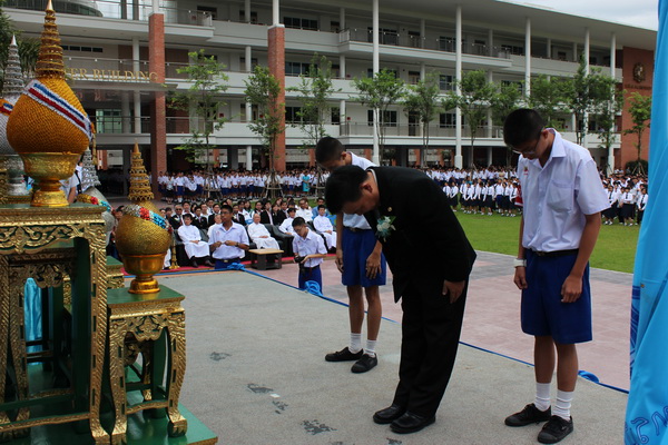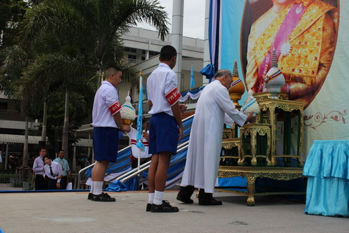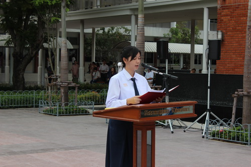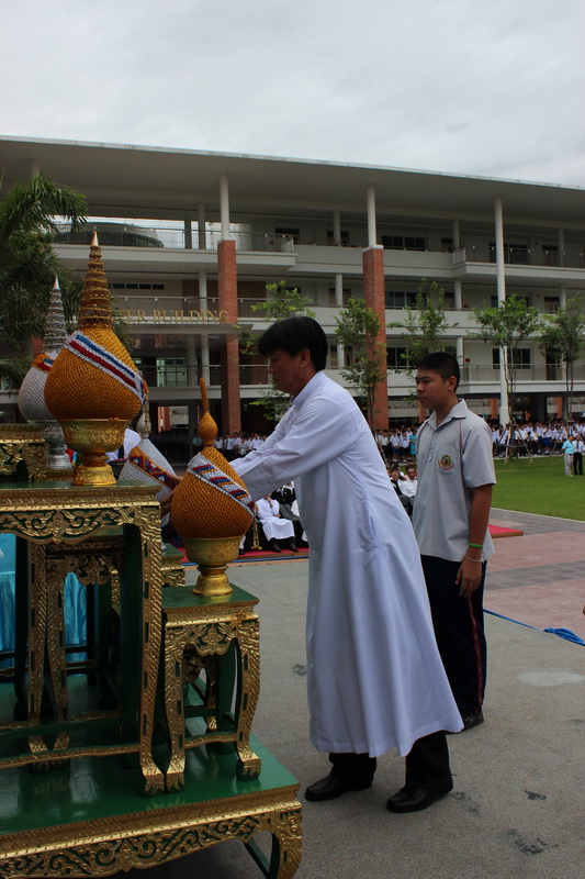 -ภราดาดร.ชำนาญ เหล่ารักผล ผู้อำนวยการ ถวายเครื่องสักการะ เปิดกรวยดอกไม้ และอ่านบทสดุดีเฉลิมพระเกียรติ ถวายพระพรชัยมงคล