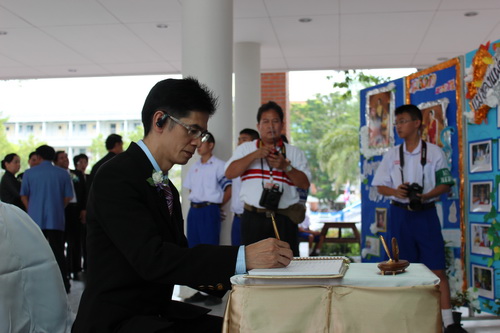 -ผู้อำนวยการ/คณะภราดา/ที่ปรึกษา/สมาคมผู้ปกครองฯ/สมาคมศิษย์เก่าฯ/คณะกรรมการเครือข่ายฯ/ชุมชนและเชิญรับเชิญ ร่วมลงนามถวายพระพร บริเวณใต้อาคารเซนปีเตอร์