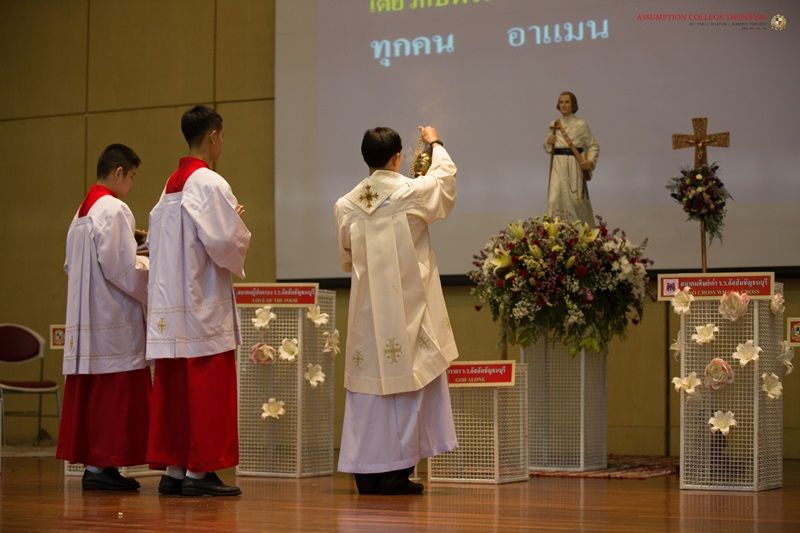 งานอภิบาล สำนักผู้อำนวยการ ได้จัดวจนพิธีกรรมเทิดเกียรตินักบุญหลุยส์ มารี กรีญอง เดอ มงฟอร์ต เมื่อวันศุกร์ที่ 21 กรกฎาคม 2560 ณ หอประชุมหลุยส์ มารี เดอ มงฟอร์ต โดย.. บาทหลวงสุพัฒน์ หลิวสิริ ให้เกียรติเป็นประธานในพิธี โดยมีผู้อำนวยการ คณะภราดา คณะกรรมการที่ปรึกษาผู้อำนวยการ สมาคมผู้ปกครองและครูโรงเรียนอัสสัมชัญธนบุรี สมาคมศิษย์เก่าอัสสัมชัญธนบุรี คณะครู และตัวแทนนักเรียนเข้าร่วมพิธี