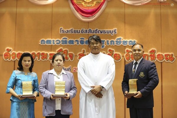 คุณส่องแสง ปทะวานิช นายกสมาคมฯ และคณะกรรมการ ร่วมพิธีกตเวทิตาจิตครูเกษียณ ปีการศึกษา 2560 โดยมอบเงินสวัสดิการ พร้อมช่อดอกไม้ ให้กับคุณครูเกษียณ 3 ท่าน ได้แก่ มิสวัชรีย์ ศรีวิชัยรัตน์, มาสเตอร์ไตรวุฒิ เอี่ยมสอาด และมิสศิริรัตน์ ธรรมครูปัทม์ เมื่อวันที 27 เมษายน 2561 ณ หอประชุมหลุยส์ มารี เดอ มงฟอร์ต