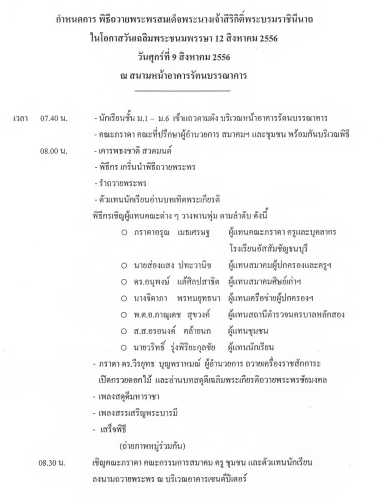 พิธีถวายพระพรสมเด็จพระนางเจ้าสิริกิตติ์ พระบรมราชนีนาถ ในโอกาสวันเฉลิมพระชนมพรรษา 12 สิงหาคม 2556 วันศุกร์ที่ 9 สิงหาคม ณ สนามหน้าอาคารรัตนบรรณาคาร