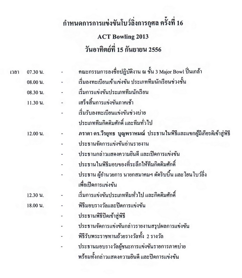 การแข่งขันโบว์ลิ่งการกุศล ACT Bowling 2013 ครั้งที่ 16 วันที 15 กันยายน 2556