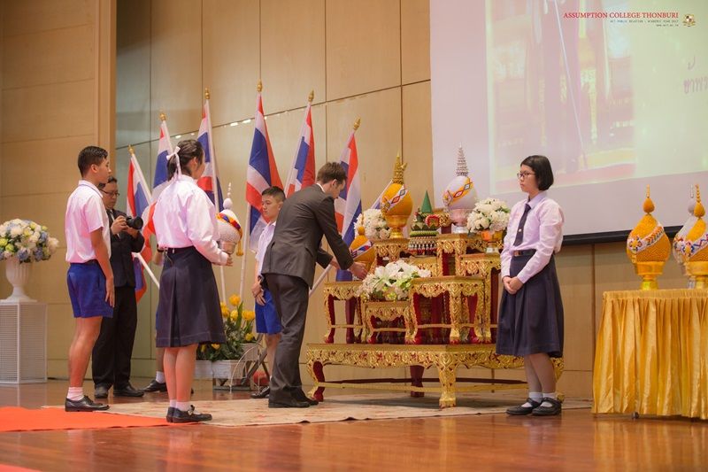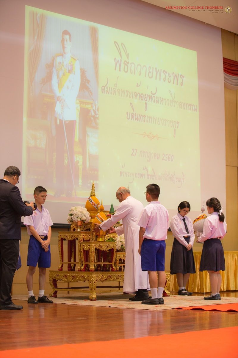 ร่วมพิธีถวายพระพรสมเด็จพระเจ้าอยู่หัวมหาวชิราลงกรณ บดินทรเทพยวรางกูร ในวันพฤหัสบดีที่ 27 กรกฎาคม 2560 ณ หอประชุมหลุยส์ มารี เดอ มงฟอร์ต