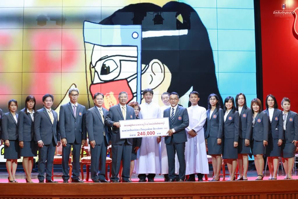 ประชุมใหญ่สามัญประจำปีการศึกษา 2562 เมื่อวันพฤหัสบดีที่ 25 มิถุนายน 2563 ณ หอประชุมหลุยส์ มารี เดอ มงฟอร์ต ในโอกาสนี้ นายส่องแสง ปทะวานิช นายกสมาคมผู้ปกครองและครูฯ เป็นตัวแทนผู้ปกครองโรงเรียนอัสสัมชัญธนบุรี มอบเงินสนับสนุนให้กับโรงเรียน ดังนี้ โครงการสอบวัดคุณภาพนักเรียนโรงเรียนในเครือมูลนิธิฯ (FSG) ประจำปีการศึกษา 2562 จำนวนเงิน 125,500 บาท สนับสนุนเงินรางวัลให้กับครูที่ไม่ขาด ลา มาสาย ติดต่อกันตลอดปี จำนวน 45,000 บาท สนับสนุนกองทุนสวัสดิการครู จำนวน 200,000 บาท สนับสนุนกองทุนบำเหน็จสมทบพิเศษ จำนวน 100,000 บาท มอบเงินสนับสนุนชมรมครูเกษียณ จำนวน 100,000 บาท มอบเงินสวัสดิการให้ครูเกษียณ ปีการศึกษา 2562 จำนวน 10 ท่าน รวม 240,000 บาท และมอบเงินช่วยเหลือโรงเรียนเพื่อเตรียมรับสถานการณ์ โรคระบาดติดเชื้อ COVID-19 จำนวน 1,000,000 บาท