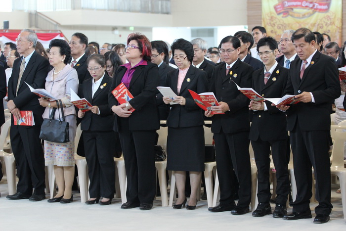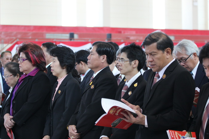 ประธานในพิธี คณะภราดา และแขกผู้มีเกียรติรับประทานอาหารกลางวัน