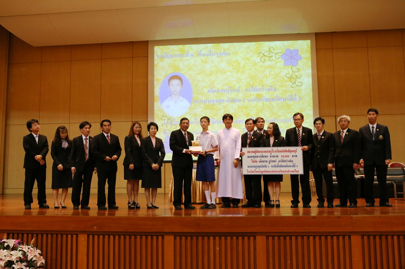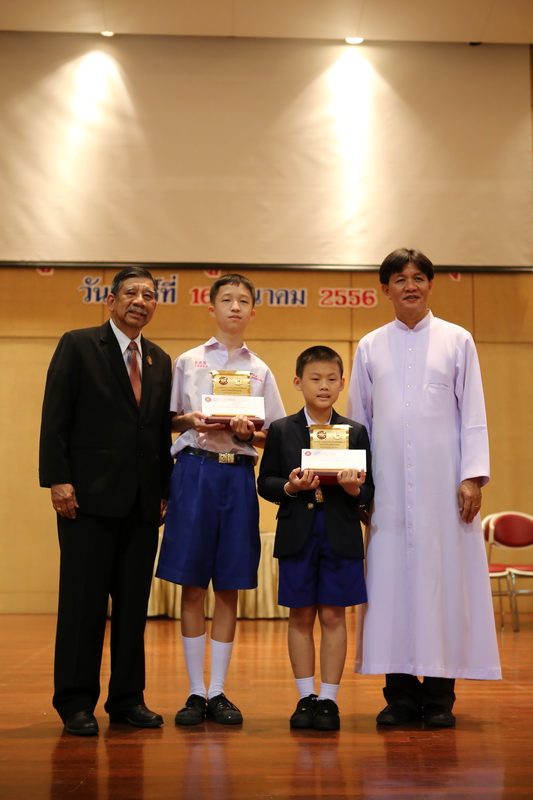 - นายกสมาคมฯ มอบโล่พร้อมทุนการศึกษา จำนวนคนละ 10,000 บาท ให้กับนักเรียน 2 คน ที่สอบได้คะแนนเป็นลำดับที่ 1 ของมูลนิธิคณะเซนต์คาเบรียลแห่งประเทศไทย ในการสอบโครงการสอบวัดคุณภาพนักเรียนโรงเรียนในเครือมูลนิธิฯ (FSG ) ประจำปีการศึกษา 2555 ดังนี้