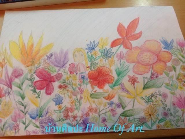 ใช้เทคนิควาดเส้น ระบายสีไม้