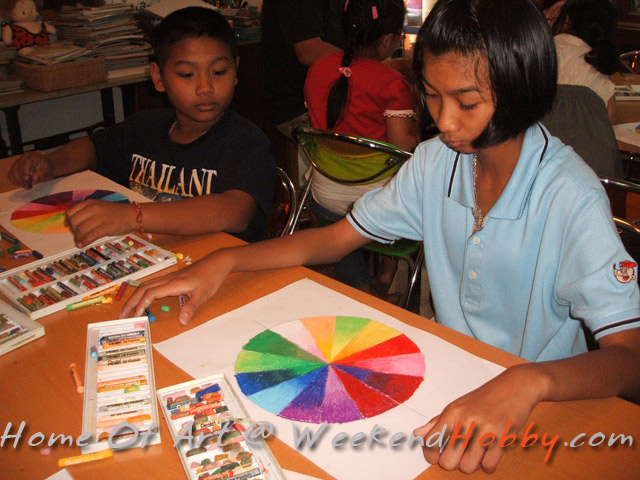 เมื่อให้เด็กเล็ก ๆ รู้จักโทนสี เราจะให้เด็กรู้จักใช้สีพร้อมกันไป จับคู่สีเกลี่ยสีให้ละเอียด