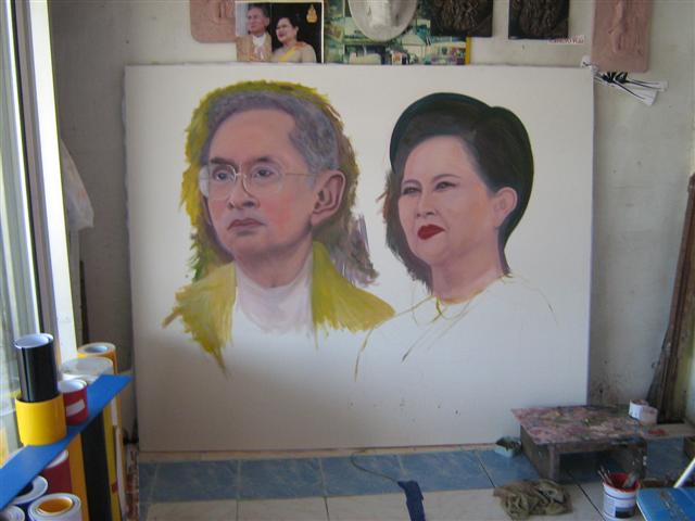 ภาพฝีแปรงพู่กันส่วนใหญ่จะเป็นภาพในหลวงอันเป็นที่จงรักภักดียิ่งของเหล่าพสกนิกรชาวไทย