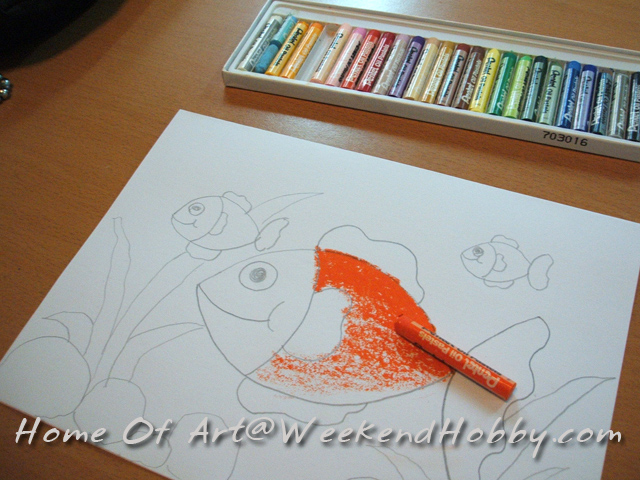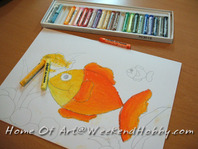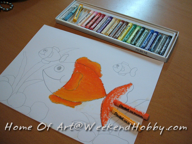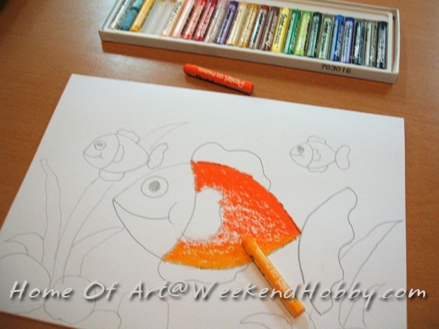 ขั้นตอนลงสี จับคู่สีให้เหมือนกัน วันนี้เราเลือกคู่สีส้มเข้ม ส้มอ่อนระบายที่ตัวปลา