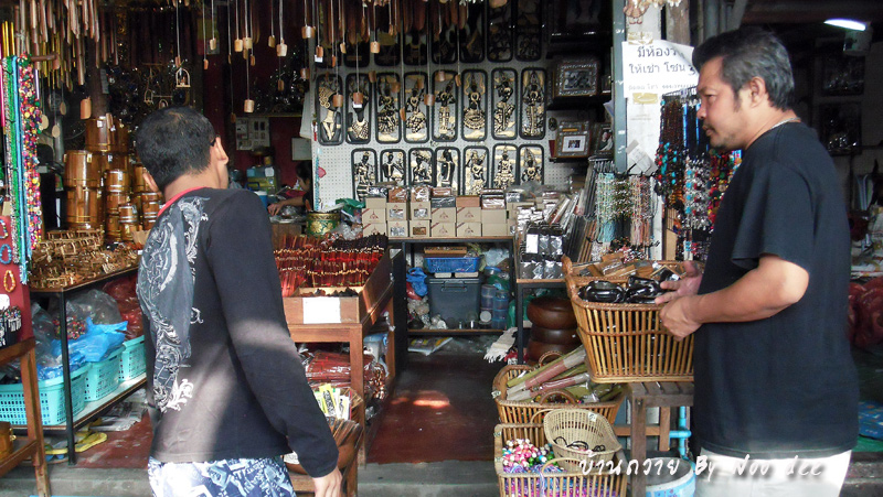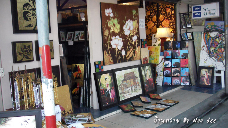 เส้นทางเข้าทั้งสาย สองข้างทางเป็นร้านแสดงฝีมือไม้แกะ ของตกแต่งบ้าน