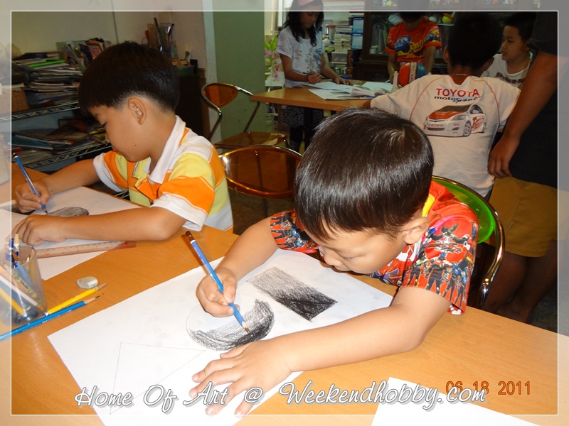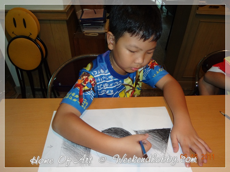 สุดท้าย เด็ก ๆ ได้อยู่กับดินสอแท่งหนึ่ง ข้างในมีคาร์บอน....ละเลงดินสอลงกระดาษ