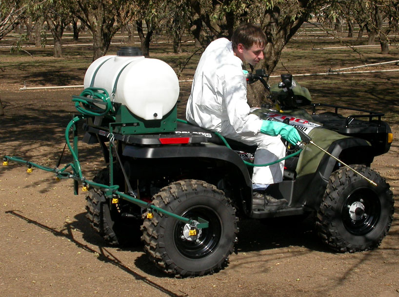 การที่นำรถเอทีวีเข้ามาใช้ในสวน โดยการติดชุดฉีดพ่นสารเคมี