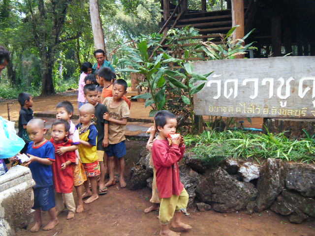 มีเด็กๆมาเล่นอยู่แถวบริเวณวัด ก็แจกขนมและเสื้อผ้ากันอีกรอบ