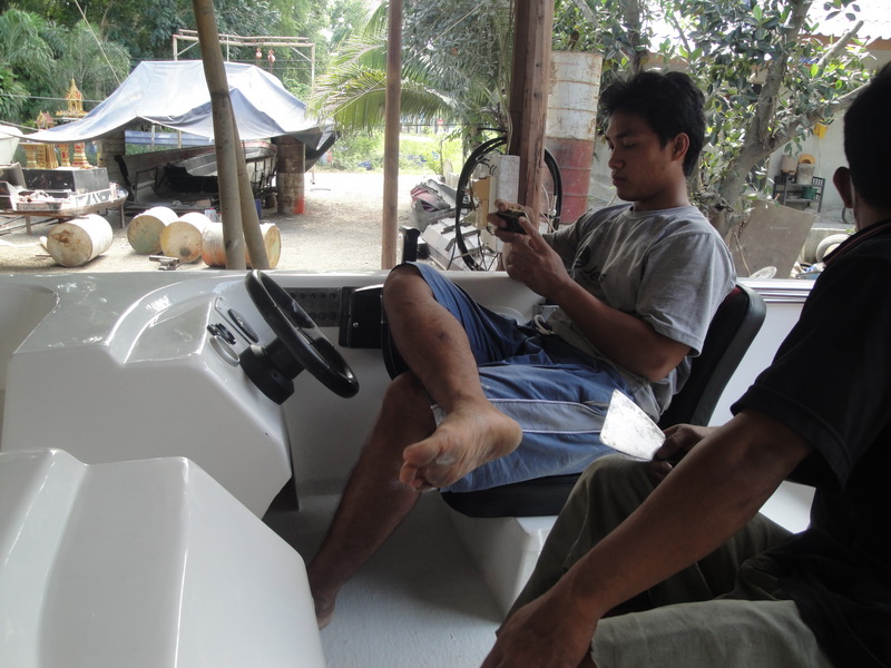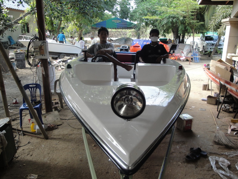 ด้านข้างตัวเรือครับ มีราวสแตนเลสสำหรับยก ใช้คนยก 4 คน ก็หนักนิดหน่อย ถ้ายก 5-6 คนสบายครับ