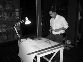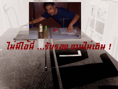 ...ช่างยืม : กระดาษเอาของเหลือจาก สนง. / Set square 40 บาท คุณภาพแย่สุดจะบรรยาย / ไม้ทีของลุง / โต๊ะงานไม้ยืมของพ่อ / ฟุตเหล็ก-วงเวียนยืมเด็กข้างบ้าน / โปรแทคเตอร์ยืมลุงภารโรงที่ทำงาน ...ฯลฯ