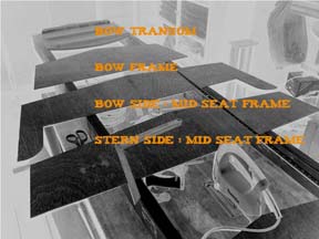 ...เฟรมต่างๆ ตั้งแต่หัวเรือยันท้ายเรือ วาดแบบบนกระดาษแข็งก่อนแล้วค่อยไปวาดลงบนไม้อัดตัวจริงเพื่อตัด