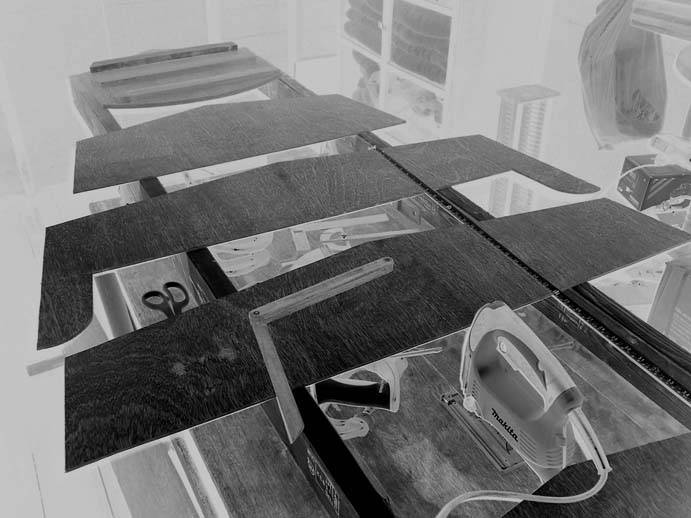 ...ไม้อัด 3 แผ่นหมดแล้วครับ จะลองประกอบแบบลำลองไปก่อนด้วยการเย็บลวดทองแดง ยังไม่ลงกาว ต้นเดือนหน้าเงินเดือนออกค่อยว่ากันใหม่ หลังจากนี้ก็เป็นงานกวาดถูบ้านพร้อมดูดฝุ่นกันเป็นมหกรรมเลย