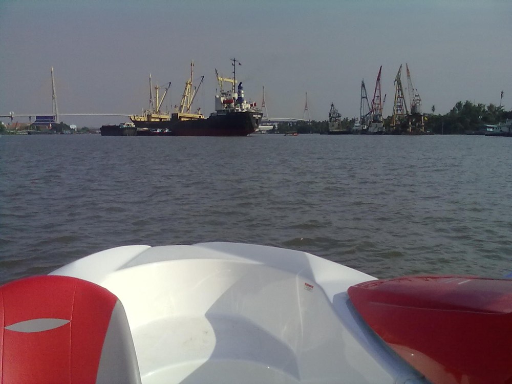 สวัสดีปีใหม่ครับน้า hydra พอดีทริปนี้วางแผนเอาไว้ว่า5 โมงเย็น เเล้วต้องตีเรือกลับบ้านเลย กลัวว่าจะมืดกลางทาง เดี๋ยวหลบสวะไม่ได้ เข้ากระบอกเจ็ทเเล้วจะเปียกน้ำกัน ใช้เวลา จากบ้านถึงกิโลเมตรที่ 000 ตอน4โมง45นาที พอถึงเเล้วก็เข้าไปเติมน้ำมันในคลอง ที่ปากคลองมีป้ายหลักกิโลเมตร 002 ลำละ30ลิตร เรือ 1ลำ เจ็ทสกี3ลำ มีลำrxp 255HP สีดำแดงอีก 1ลำตามถ่ายไม่ทัน แกกำคันเร่งหมดอย่างเดียวเลย