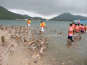 สวัสดีครับเพื่อนๆ วัน นี้ไปหากับตันเรือปุ ที่จอมเทียน กับตันเรือปูพาเราไปเที่ยว ที่ เกาะมั้งกี้ เกาะลิง ที่นั่นจะมีลิงจำนวนมาก พอเราไปถึคงมันนั้งรออยู่ พอเราจอดเรือเดินขึ้นไปบน ฝั่ง มันก็เดินมาหาเรา มันเดินมาด้วยความหวัง ขอเศษอาหารเล็กน้อย ตัวมันผม มันหิว มันไม่ค่อยมีอะไรกิน เราเอากลัวยและอสหารไปให้มันกิน มันดีใจมากเลย เพื่อนๆมันอีกหลายตัว มาเอาของที่เราไปให้ ไม่นานจากนี้เราตจะกลับไปอีก ไปเที่ยวนี้เราจะเอาของไปให้มันเยอะๆ เพราะรู้ว่ามันหิว มันหอิวมากดูจากร่างกายที่ซูบผอม เดี๋ยวเอารูปมาให้ดูครับ