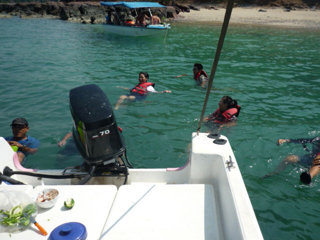 พวกเราทานปลาหมึกย่างในเรือกับน้ำปลา และพริก มันอร่ยมากจริงๆ