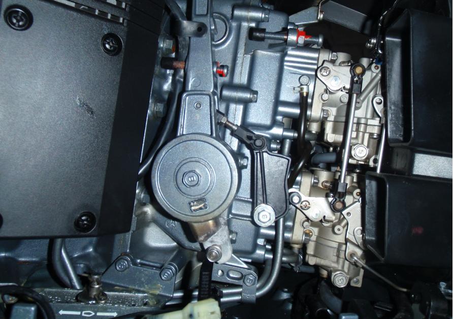 รูปนี้ขยายมาใกล้ๆอีกเช่นกัน หลังจากโดนขโมยถอดเปลี่ยนคันโยกเร่งเครื่อง สังเกตุเห็นมีรอยไหม้จากการเชื่อมเพราะว่าแกนหักแล้วเอาไปเชื่อมมา และแท่งสีดำไว้จับยึดคันเร่งก็ไม่มี แต่เอามาใส่ไว้ในเครื่องแทน รอยจารบีก็เลอะเทอะไปหมด...