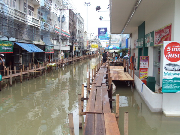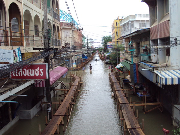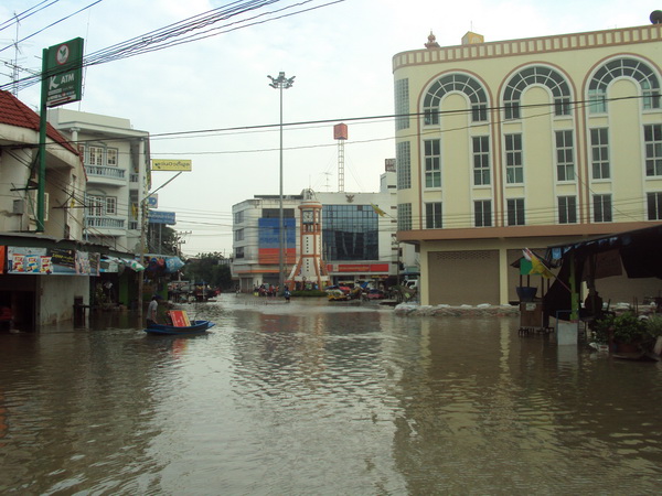 ภาพที่ผมถ่ายใว้เมื่อปีที่แล้ว2553 ตรงหอนาฬิกา อ.เสนา ถมที่สูง ทำเขื่อนแล้วยังท่วม นี่ขนาดน้ำท่วมการเมืองนะเนี่ย สมัยก่อนที่ตลาดบ้านแพน หรือ อ.เสนา น้ำท่วมทุกปี แต่สามปีท่วมใหญ่ครั้งหนึ่ง คือพายเรือขายของ ซื้อของในตลาด เป็นประจำ คนเราแก้ปัญหาก็เฉพาะพื้นที่เราเพื่อหวังว่าจะหมดปัญหา แต่ลืมคิดถึงส่วนใหญ่ การถมพื้นที่สูงเมื่อน้ำเหนือมาไม่สามารถระบายต่อไปได้ ทางเหนือถึงได้น้ำท่วม แล้วการถมดินก็ต้องไปนำดินที่อื่นมาถมทำให้พื้นที่อื่น เป็นที่ลุ่มแทน ที่นาแถวบ้านผมแปลสภาพเป็นบ่อทรายไปหลายที่แล้ว คุ้มไหมครับ แทนที่จะนำไปปลูกพืชทางการเกษตรเลี้ยงประชากรภายในประเทศ และทำรายได้เข้าประเทศ