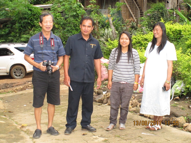 อาเจ็กร่วมถ่ายรูปเป็นที่ระลึกกับผู้ใหญ่บ้านของหมู่บ้านที่นี่