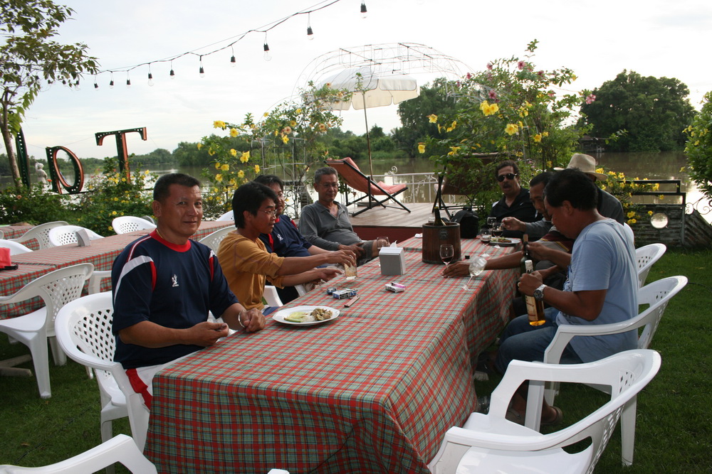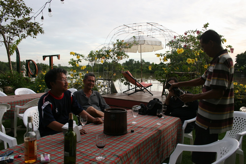 หลังจากผมไปถึง วงสนทนาคลอบรรยากาศยามเย็นริมน้ำ เคล้าด้วยกลิ่นรสของไวน์ ก็เริ่มขึ้นทันที