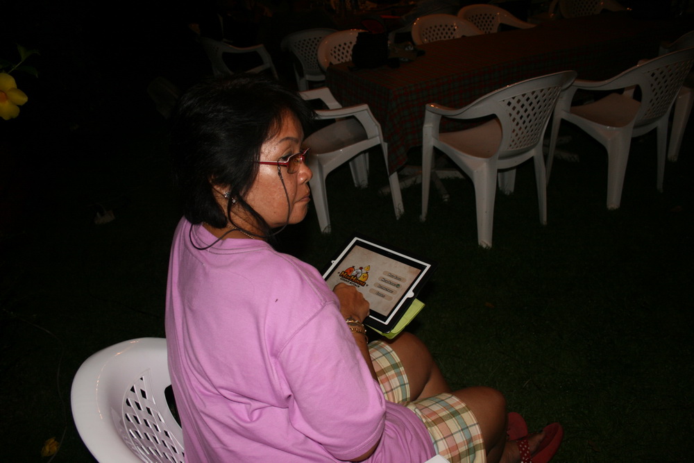 คนอื่นดื่มด่ำกับบรรยากาศไวน์ และบรรยากาศคาราโอเกะ แต่ประธานอ๋อยแอบหนีมาเล่นเกมส์ อิอิ