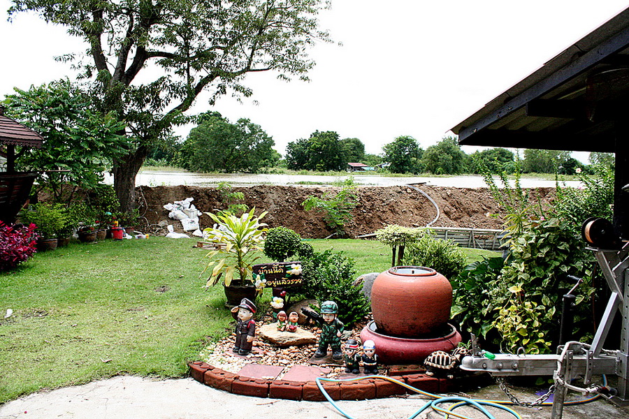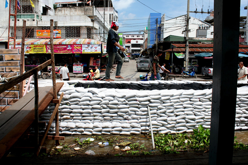 แต่ที่น้ำไม่เข้าเมือง เพราะเทศบาลต่อกำแพงกระสอบทรายขึ้นไปบนกำแพงอีก 2 ชั้น