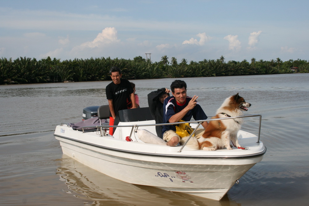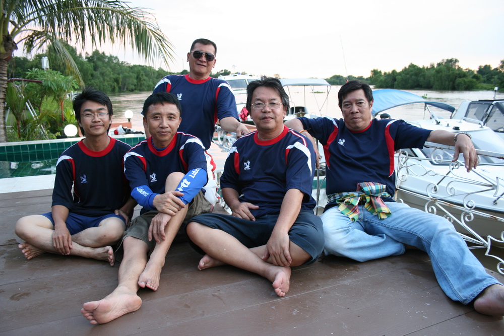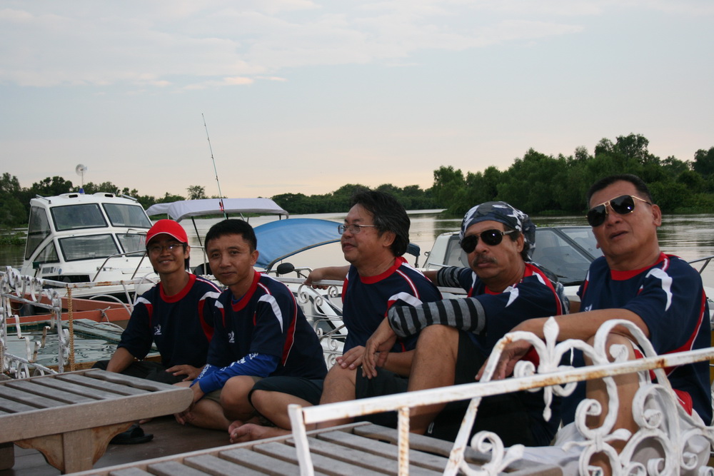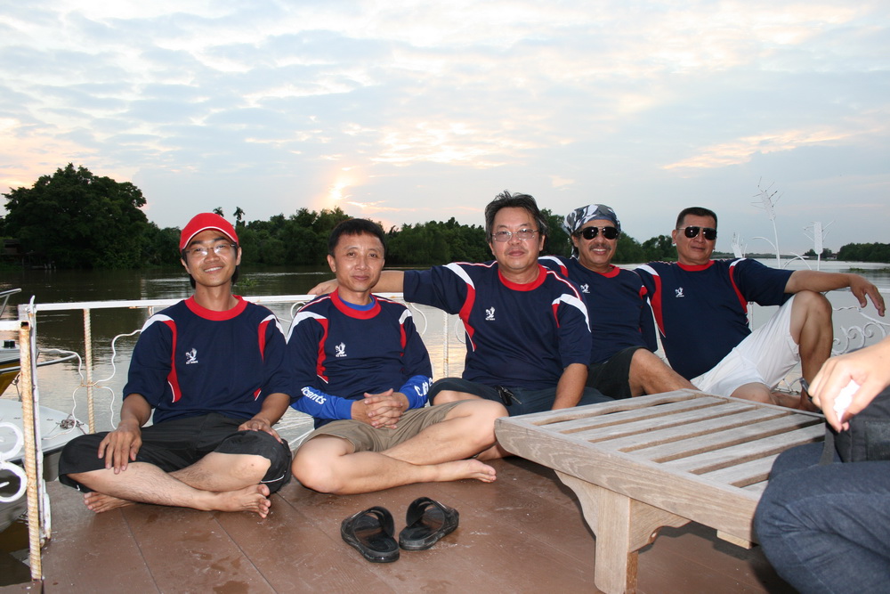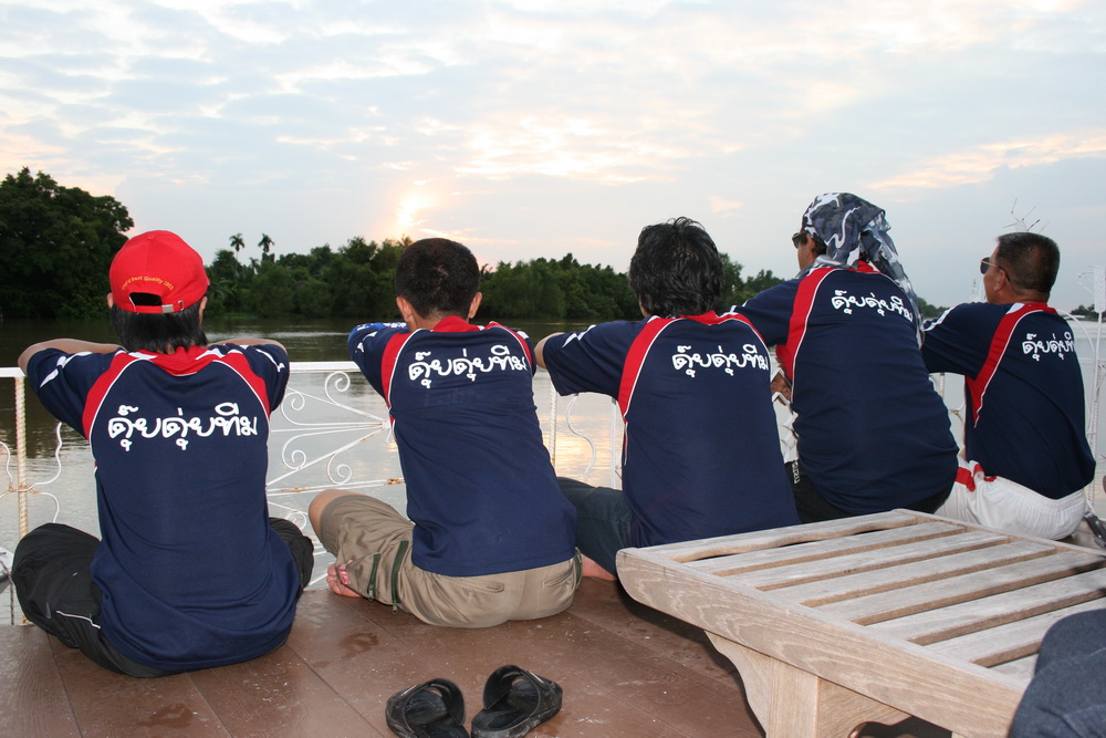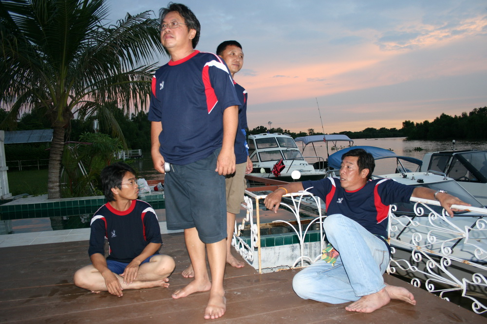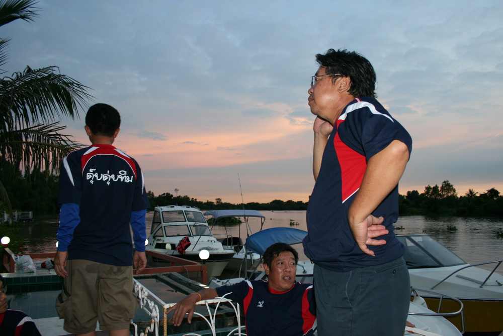 เมื่อจอดเรือเก็บข้าวของกันเสร็จ พวกเราก็มานั่งเสวนา ดื่มด่ำกับบรรยากาศยามเย็นริมน้ำ บรรยากาศยามเย็นที่ธาราบางคล้าสวยจริงๆ ครับ
