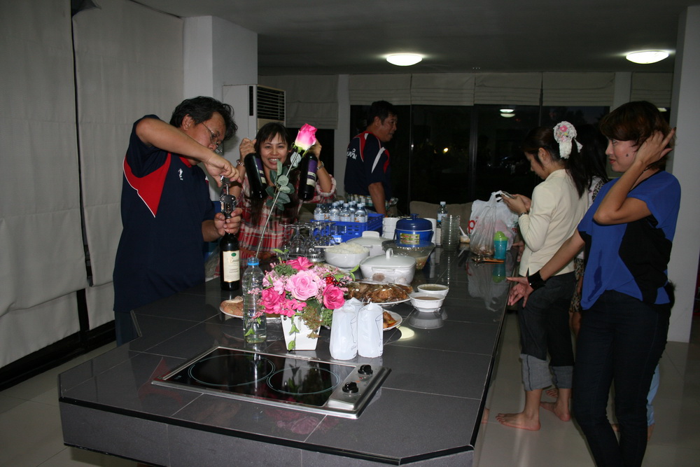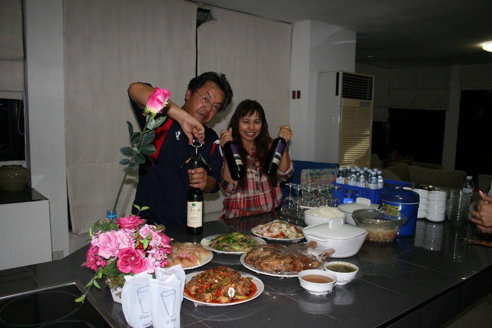 งานสังสรรค์ยามค่ำคืนเริ่มขึ้น น้าทวนเป็นประธานเปิดงานด้วยการเปิดไวน์ขวดแรกครับ