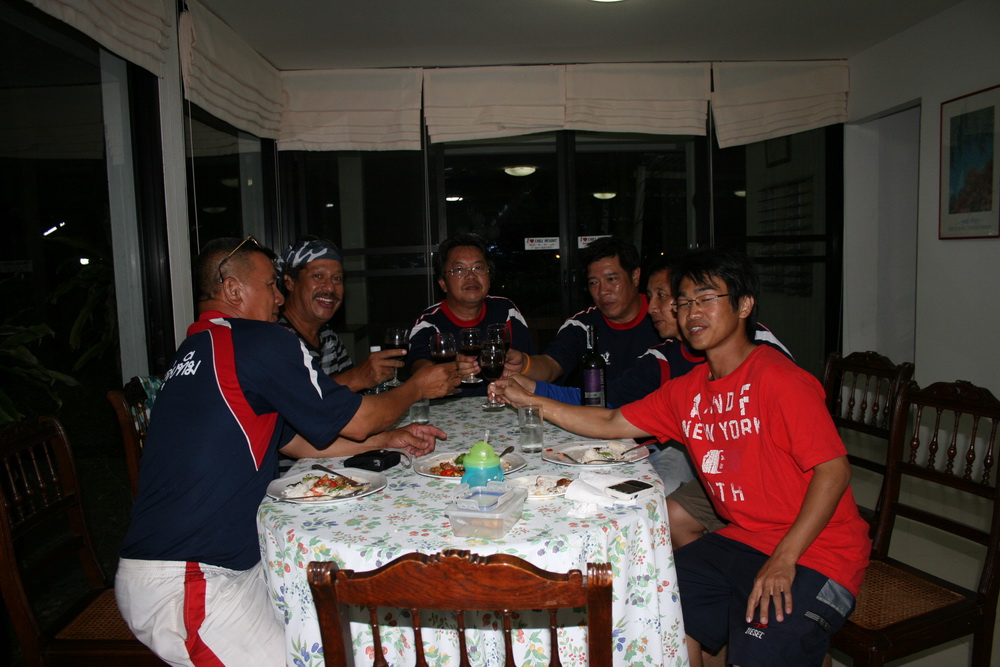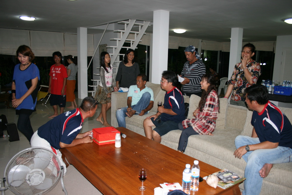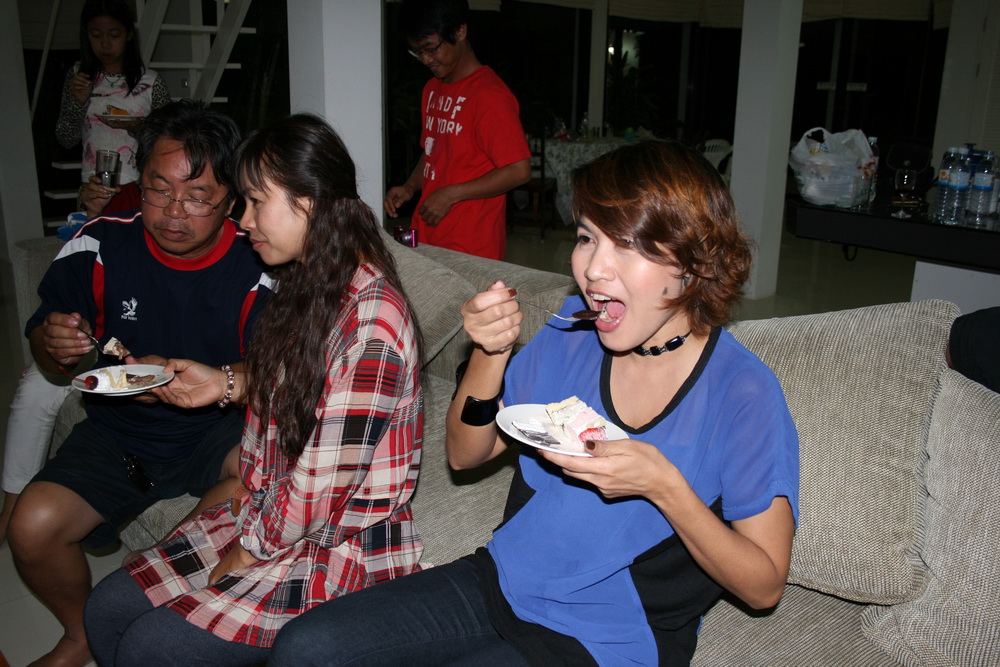 หัวหน้าทวนชวนให้เข้าไปบ้านพัก วันนี้เราเปลี่ยนบรรยากาศยามค่ำคืนจากกลางแจ้งมาเป็นห้องแอร์เย็นๆ ในบ้านพัก และวันนี้เรามีงานฉลองที่สำคัญของสมาชิกทีมของเราคนหนึ่ง