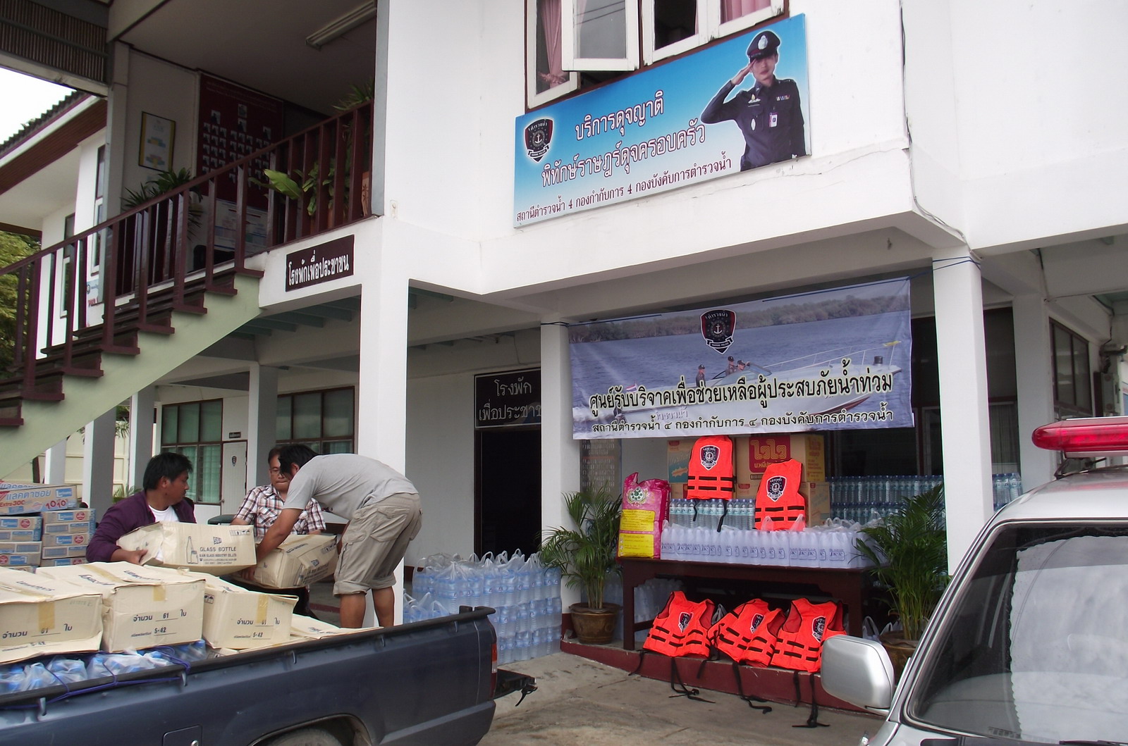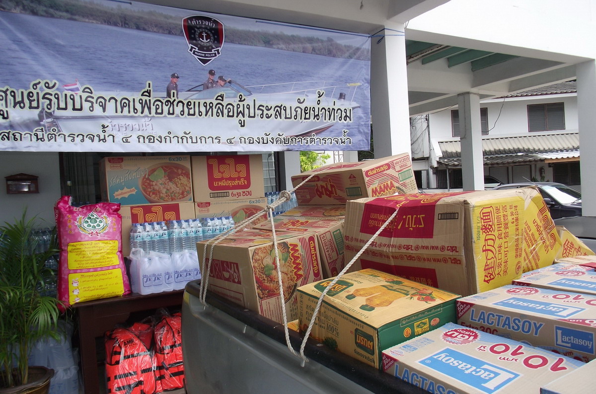 สถานีตำรวจน้ำ 4 กองกำกับการ 4 ได้จัดตั้งศูนย์รับบริจาคช่วยเหลือผู้ประสบภัยน้ำท่วม โดยตั้งศูนย์อยู่ที่สมุทรสาคร ได้รับการประสานจากกลุ่ม WBC ขอสนับสนุนสิ่งของจำเป็นเพื่อช่วยเหลือผู้ประสบภัยน้ำท่วม ที่จังหวัดพิจิตร และคุณโทน T-BONE สมาชิกอาสาสมัครแจ้งเหตุและช่วยเหลือผู้ประสบภัยชุดปฎิบัติการเคลื่อนที่เร็วทางน้ำ ตำรวจน้ำ ได้ขอรถสายตรวจรถยนต์วิ่งนำขบวนและอำนวยความสะดวก ขบวนเริ่มจัดเตรียมสิ่งของใส่รถ ใส่เรือ และเริ่มเดินทางมุ่งหน้าไป จ.พิจิตร ก่อนมืด วันที่ 16 ก.ย.54