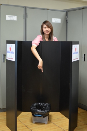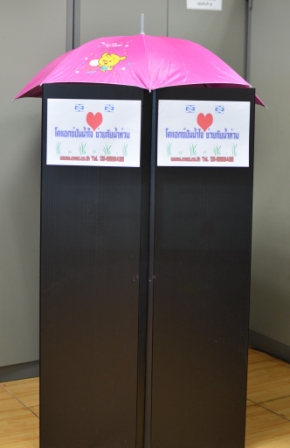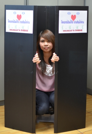 น้องๆที่ทำงานได้ออกแบบ ส้วมที่ให้ความสะดวก ปลดทุกข์ได้ทุกที่ เป็นห้องมิดชิด ทดลองทำมา 20 ชุด แจกแถวอยุธยา