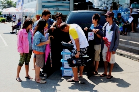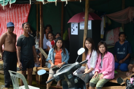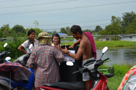 ที่เหลืออีก 10 ชุดเอาไปแจกผู้ประสพภัยโดยตรง ที่มาตั้งเต๊น อยู่อาศัยตามถนน ที่ไม่มีห้องน้ำ จุดละ 1 ชุด รายนี้ตื่นเต้นมาก ลงมือประกอบเองเลย