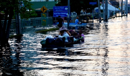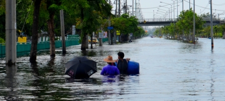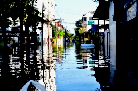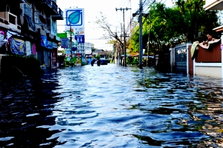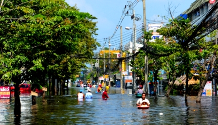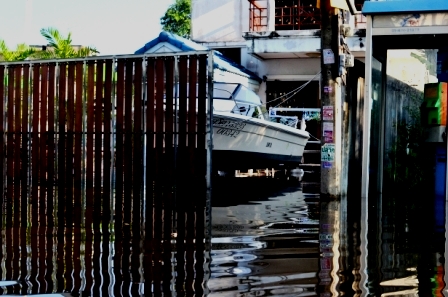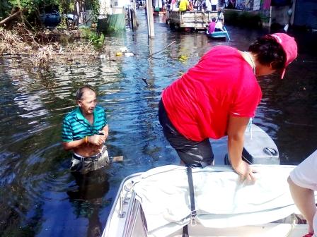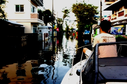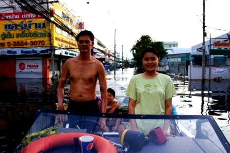 ภาพคนเดินลุยน้ำผ่านหน้าบ้านแบบนี้ทุกวัน ผมว่าน้าทุกคนในเวปนี้ที่มีเรือ Speed Boat จอดอยู่หน้าบ้านอย่างผมก็คงทนไม่ได้