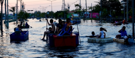 ณ.บ้านเลขที่ 1 แขวงดอนเมือง เขตดอนเมือง วันนี้น้ำทะเลหนุนสูงสุด ได้ฤกษ์เอาเรือลง ออกจากบ้านที่มีแต่น้ำเต็มไปหมด