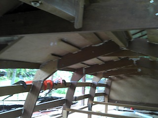 น้าอย่าลืมเดินท่อระบายน้ำจากหัวเรือไปท้ายเรือนะครับ ท่อสายพวงมาลัยกับสายคอนโทรลด้วยครับ เดี๋ยวปิดท้องแล้วจะวุ่น