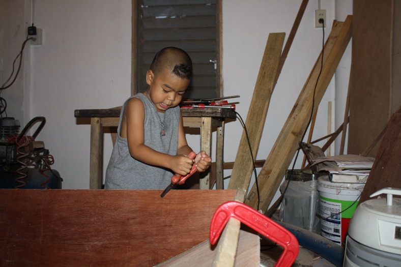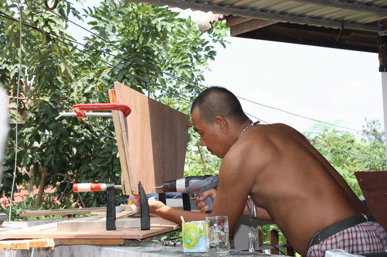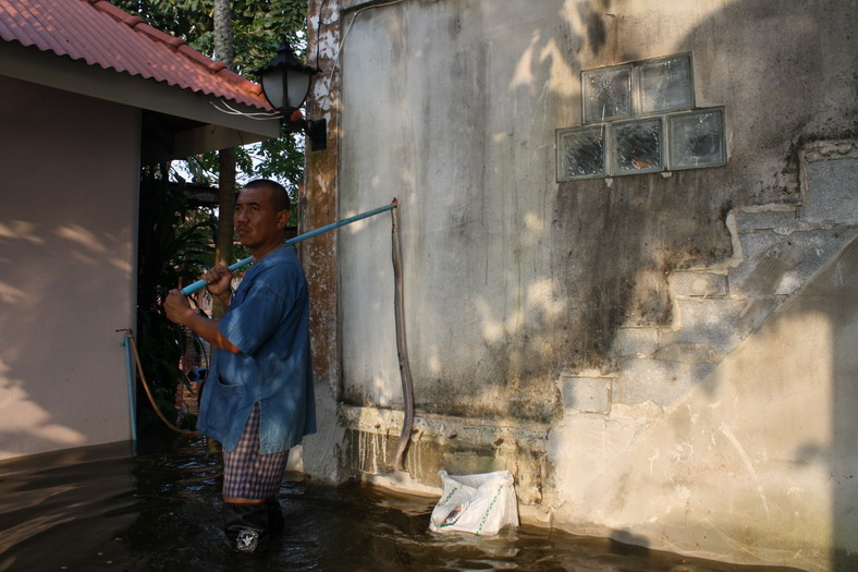 จากประสบการณ์และข้อมูลทำให้ผมมั่นใจว่า ทุ่งบางบัวทอง ที่บ้านทุ่งของเราจะต้องจมอยู่ใต้ระดับน้ำทั่วหน้าแน่นอน ทำให้ผมเริ่มสะสม(รื้อ) ไม้ รวบรวมวัสดุจำพวก เรซิ่น ไฟเบอร์กลาส อซิโตน ฯลฯ ไว้ก่อนบ้างแล้ว เหตุง่ายมาก ผมอยู่ในสถานการพนังกั้นน้ำที่บางบัวทองแตกพอดี ขับรถข้ามเกาะหนีน้ำ เลยมาทางบางใหญ่เนื่องจากรถติดเหลือบเห็นร้าน เรซิ่นบางใหญ่แวะซะเลย ทำให้มีอุปกรณ์ที่จำเป็นพร้อม