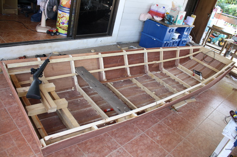 ผมกำลังวางแผนต่อเรืออีกลำอยู่พอดี ทีแรกกะว่าจะต่อเรือ Tango Skiff ที่เพิ่งจะได้แบบมาหมาดๆจากนอก แต่คิดไปคิดมาก เอาเหตุผลต่างๆมาเป็นตัวตั้ง ทำให้สรุปว่า มหาอุทกภัยครั้งนี้ ต้องต่อเรือที่เหมาะกับสถานการณ์บ้านเรา และสามารถนำไปใช้ในสถานการณ์อื่นๆเช่นพาครอบครัวไปท่องเที่ยวตามบึงต่างๆได้ด้วย เลยมาลงตัวที่ JON BOAT 1232 นี่เอง