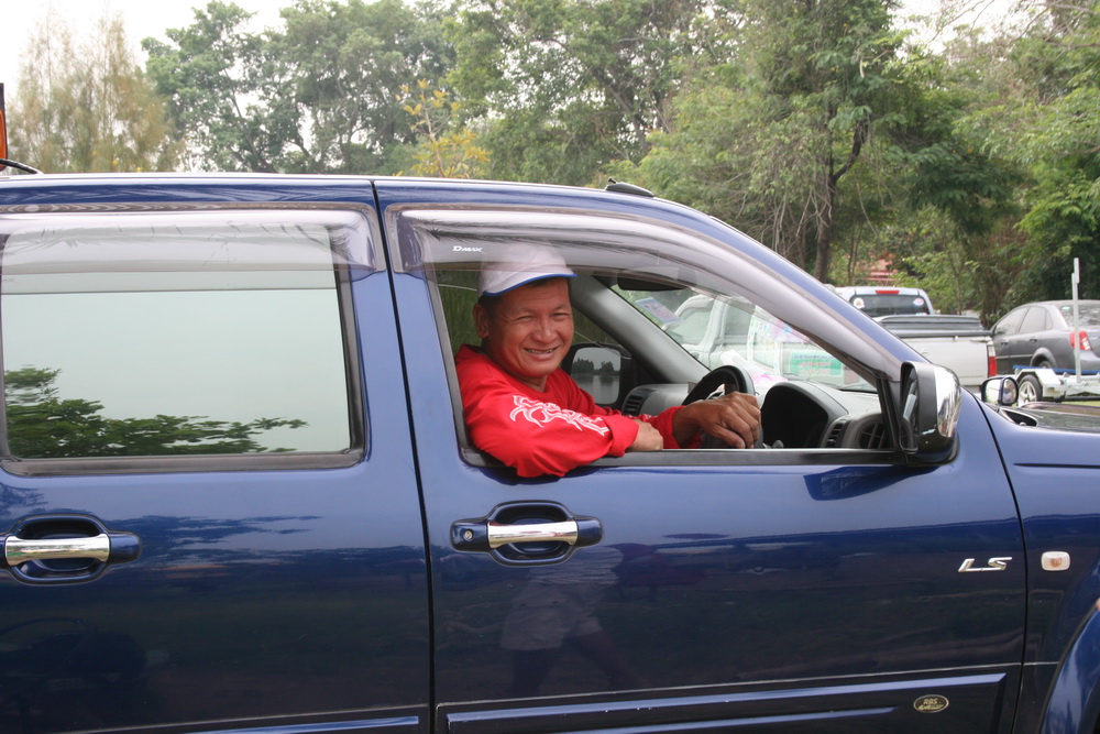 ส่วนเจ้าของเรือ ได้แต่ยิ้มเจื่อนๆ บนรถ อิอิ